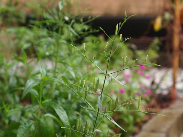 I noticed a jar of dried leaves in my Dad’s kitchen and asked the maid what they were. I take it for coughs, she said. She walked me outside to show me the plant and said it's better to take it fresh- three leaves rolled up together and swallowed whole. She was from Indonesia but had spent some time working for a local herbalist’s family and had spent time filling capsules of this herb for their store.